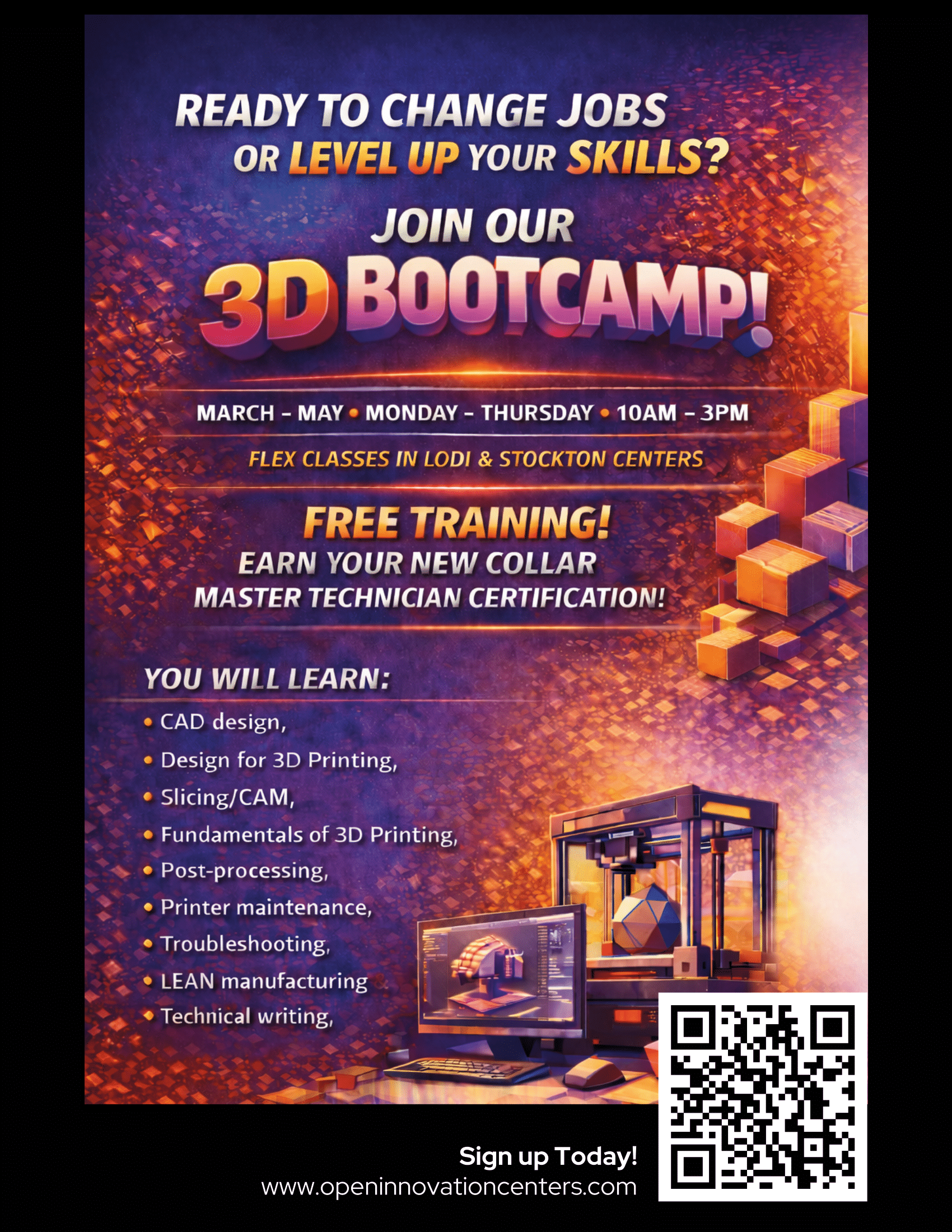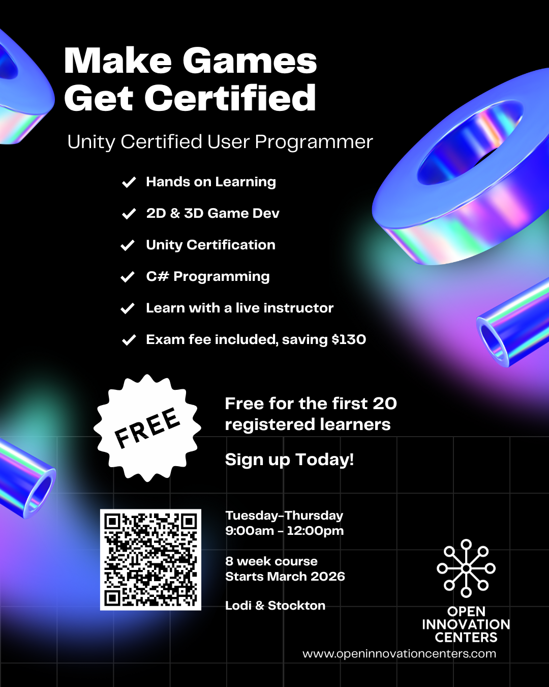 Thank you for investing in local innovation.We’re more than programs—we’re a hub for learning, creativity, and innovation. Open Innovation Centers is a welcoming community space with a central hub and dedicated labs supporting our courses. Stop by to explore, build new skills, and turn ideas into real projects. Visit us at: